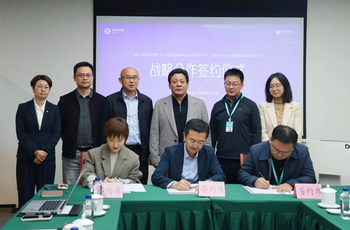 2025年11月5日,芯位教育与成都天府创新成果转化科技服务有限公司、成都天府新区人才发展职业培训学校有限公司正式签署战略合作协议。 三方将围绕教育合作、人才交流、科技成果转化等方面展开系统性深度合作,共同致力于构建人工智能与产教融合发展的新生态,为区域高质量发展注入新动能。