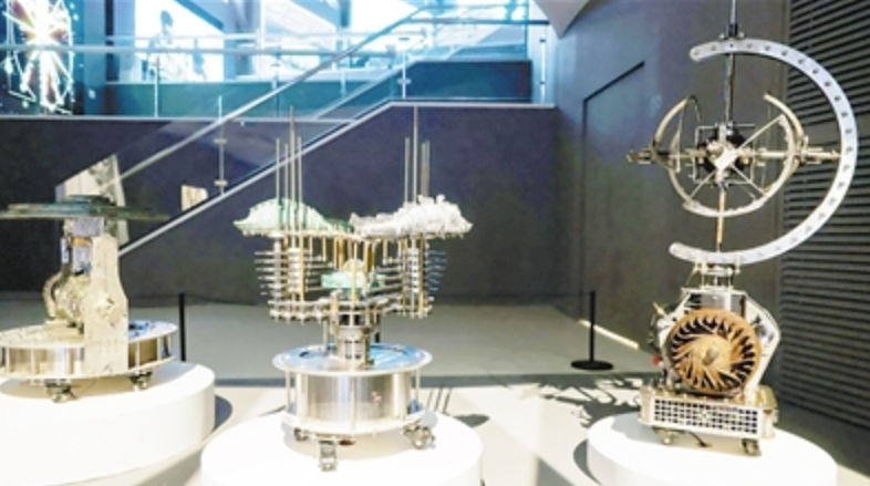 展览中不乏因技术迭代驱使人们加强对话的前沿作品。数件来自国内外的作品通过沉浸式装置、可穿戴设备、交互界面等媒介,让观众亲身体验“人机联结”的感知状态。其中,聂士昌的《滴动仪》《循回仪》《璇玑仪》(见图)便是机械动力与数字算法融合的代表,探索着机械运动与空间反馈的交互逻辑。以美国艺术家扎克·利伯曼《每日速写》为代表的作品,则通过捕捉观众的手势、声音与面部表情来驱动艺术创作,通过算法生成获得探索艺术主体表达的无限可能,标志着艺术正从静态观赏走向动态共创。这类作品展示了技术作为创作方法论的潜力,为理解数字时代的创造性思维提供了新视角。