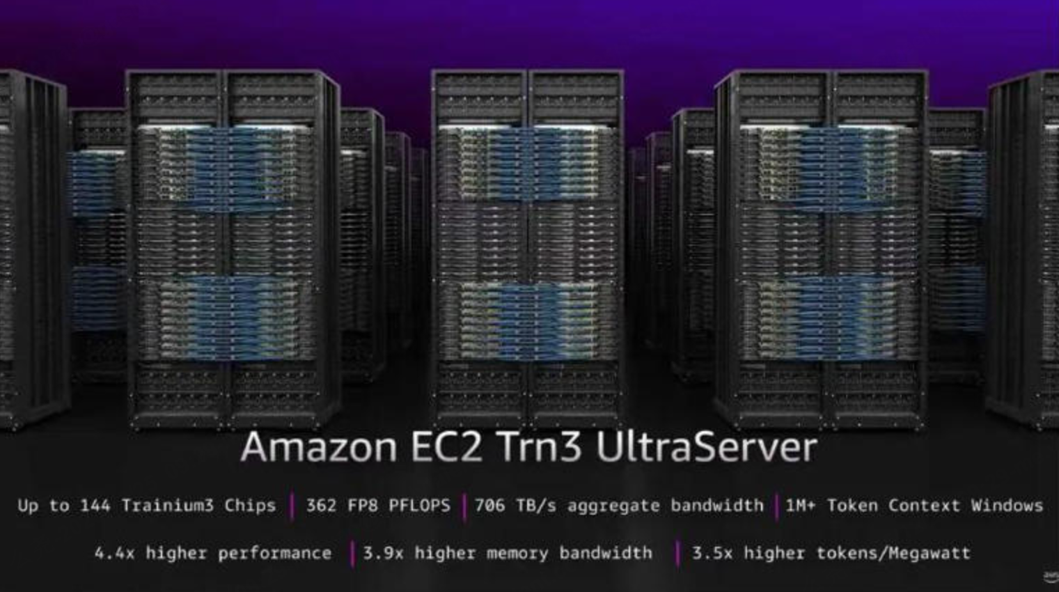 本次大会,亚马逊云科技推出最新一代自研训练芯片Amazon EC2 Trainium3 UltraServers,相比前代,其计算性能提升4.4倍,而更为关键的能效指标:每兆瓦功耗处理的AI Token数量提升了5倍。这直接回应了企业对于大模型训练成本的关切。