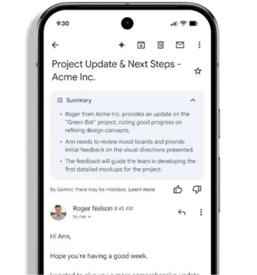 第三项新增免费项目是针对长邮件会话的AI摘要功能,当用户打开一段篇幅较长的邮件往来时,界面顶部可能会出现一张“AI Overview”(AI总览)卡片,以要点列表形式概括会话中的主要讨论内容,帮助用户快速抓住重点信息。目前,这三项AI功能已面向美国地区的Gmail个人账号用户开始推送,Google表示,后续将逐步推广至全球用户。
