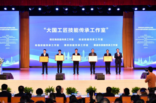 年会上,还举行了“大国工匠技能传承工作室”“教师企业实践基地”“熊猫工坊”授牌仪式等系列项目发布活动。韩世海、杨波、肖强、蔡苏和邹文军等5人获重庆市渝北职业教育中心“大国工匠技能传承工作室”授牌。